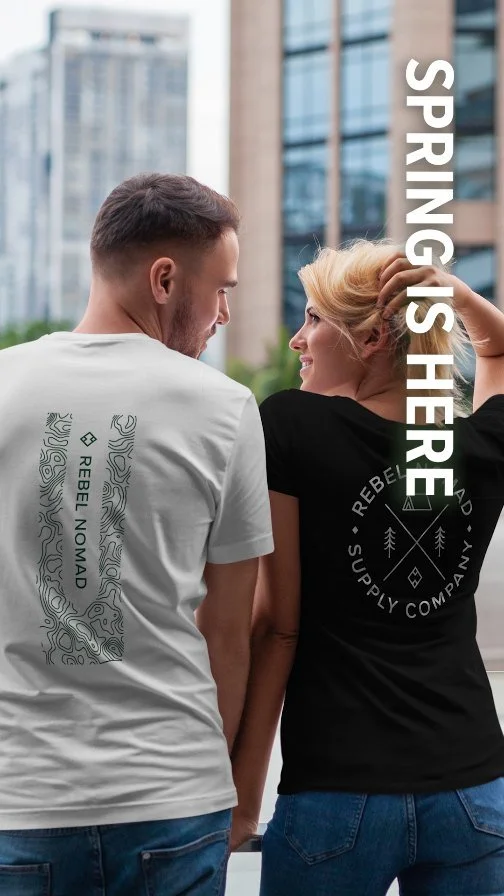 The Pythagorean Creed Tee features a clean, architectural design that balances structure with the wild. A deep forest green topographic map segment represents the terrain waiting to be discovered, paired with the bold mandate to leave the pavement behind. Anchored by the Rebel Nomad compass, this tee is a tribute to the quiet clarity found only in the backcountry.