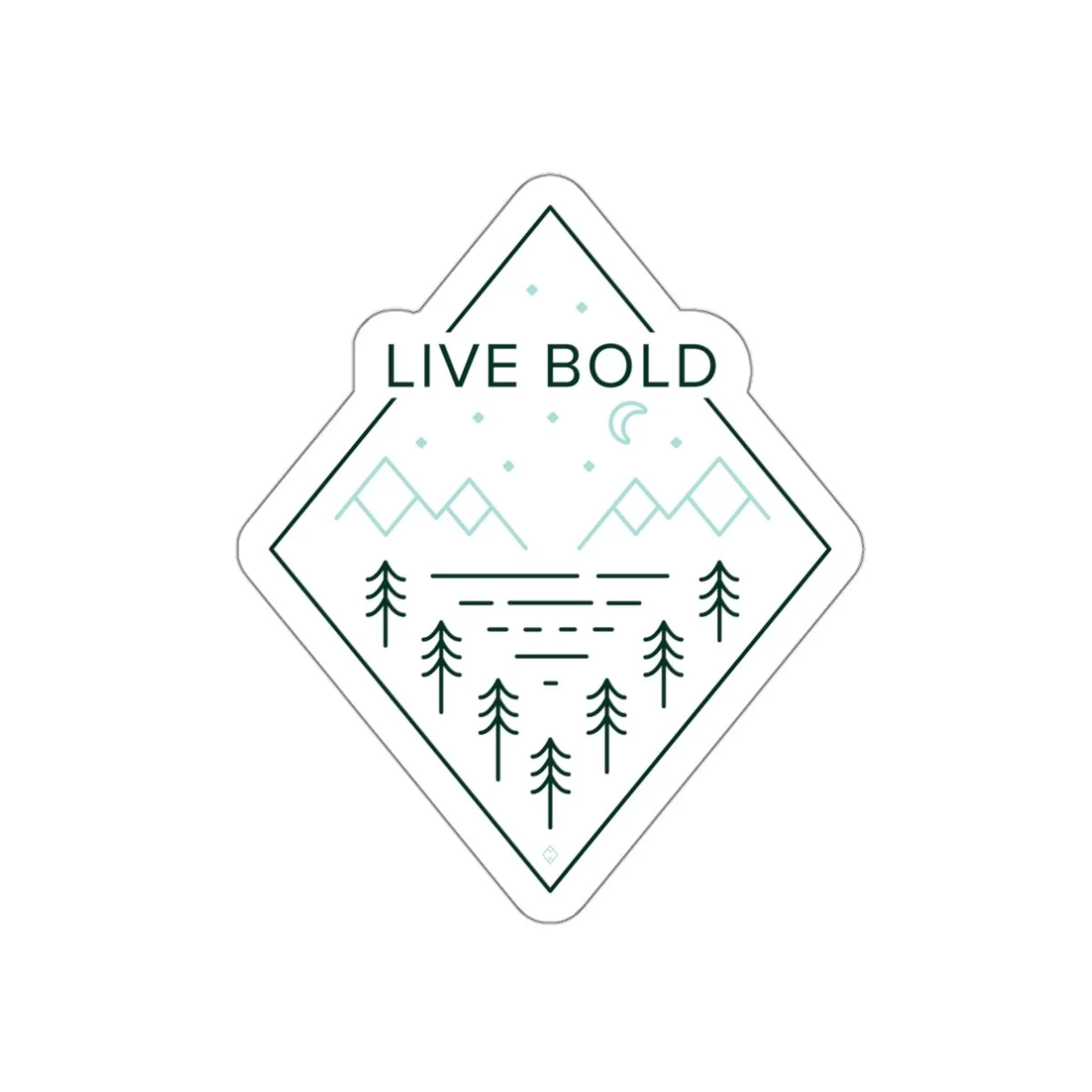 The Midnight Meridian is a tribute to those who aren’t afraid of the dark. Featuring a sharp, geometric diamond frame, this design encapsulates the perfect backcountry night: a crescent moon, a field of stars, and the silhouette of the pines against a rugged ridgeline. This sticker is a reminder that even though the sun goes down, this adventure doesn't have to stop!