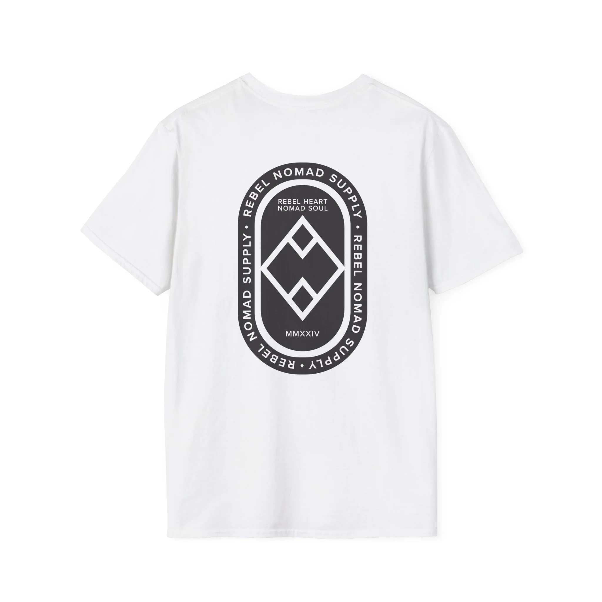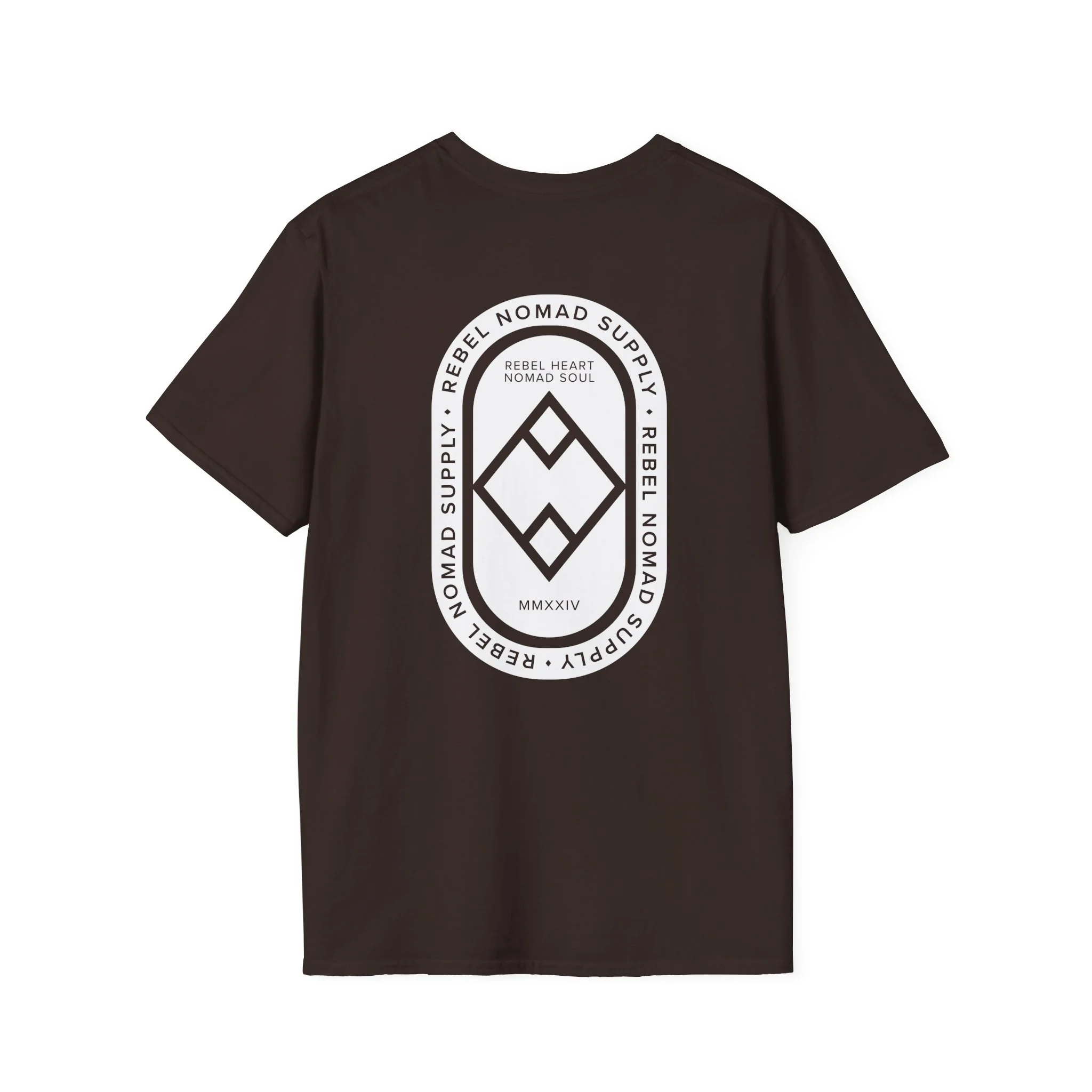 The center of the crest features the MMXXIV Roman numerals—a direct nod to 2024, the year this brand was born from a desire for more grit and more freedom. Anchored by our "Rebel Heart, Nomad Soul" ultimatum, this tee is for those who were there from the start and those who carry that same founding spirit today.