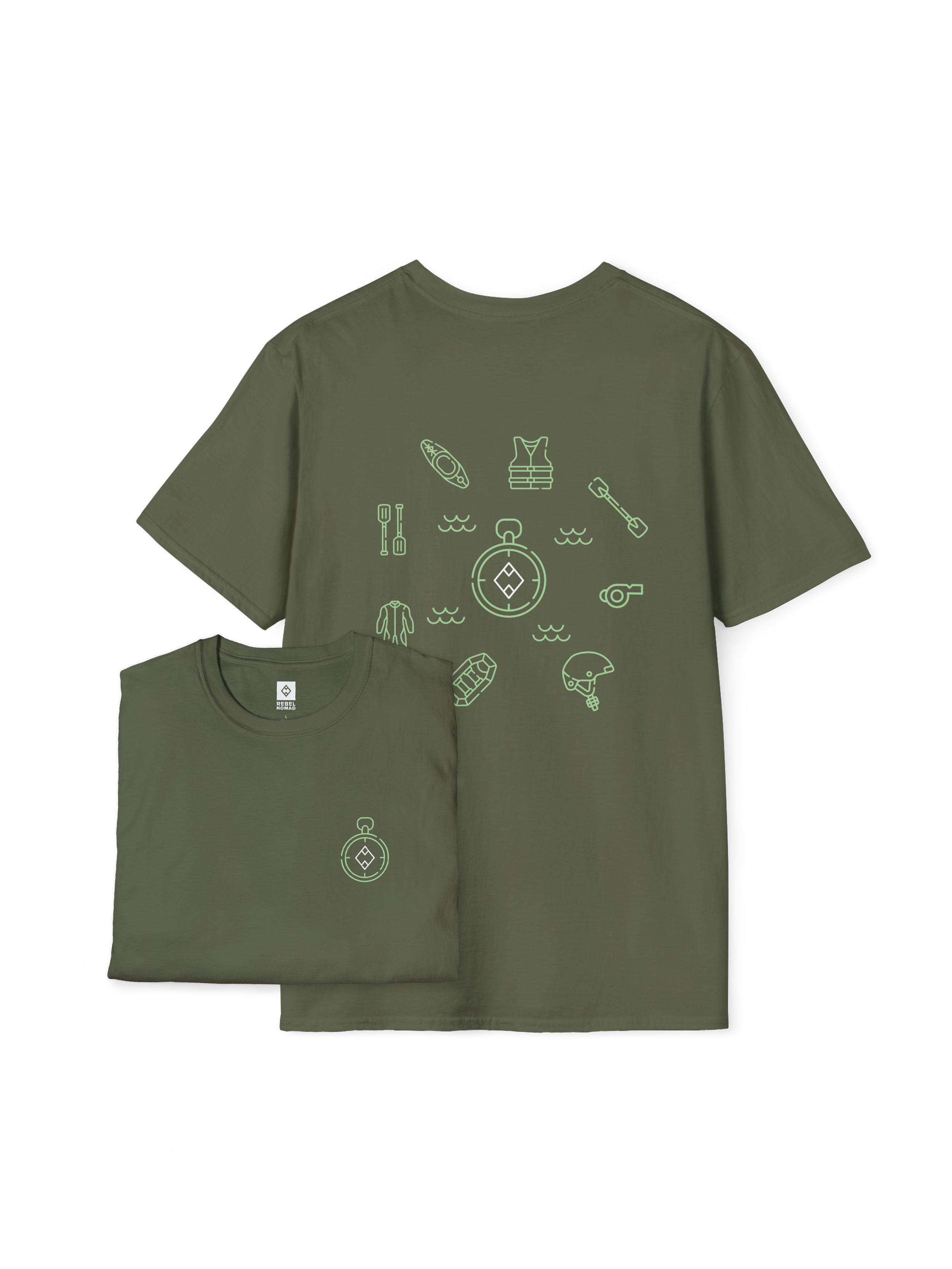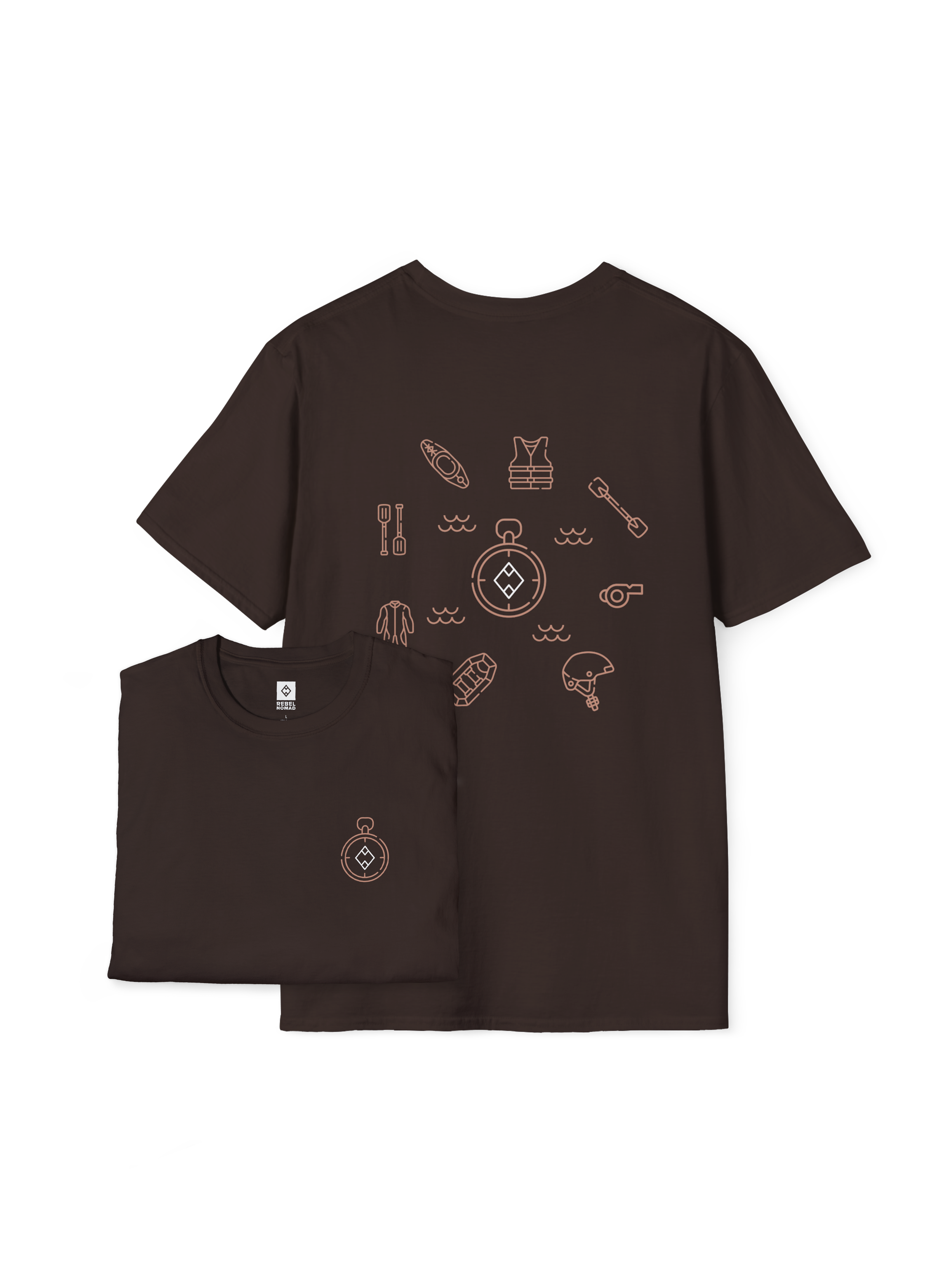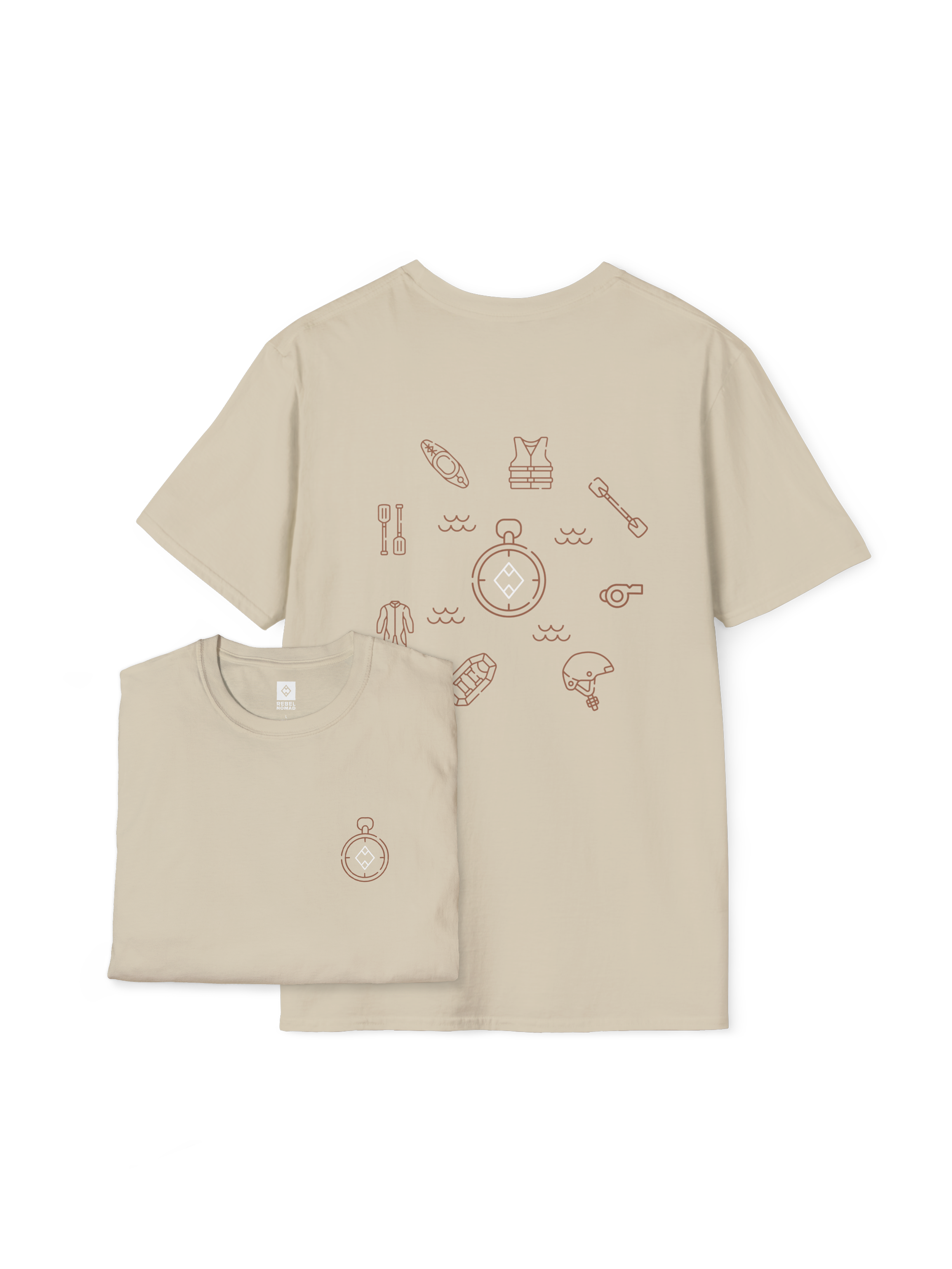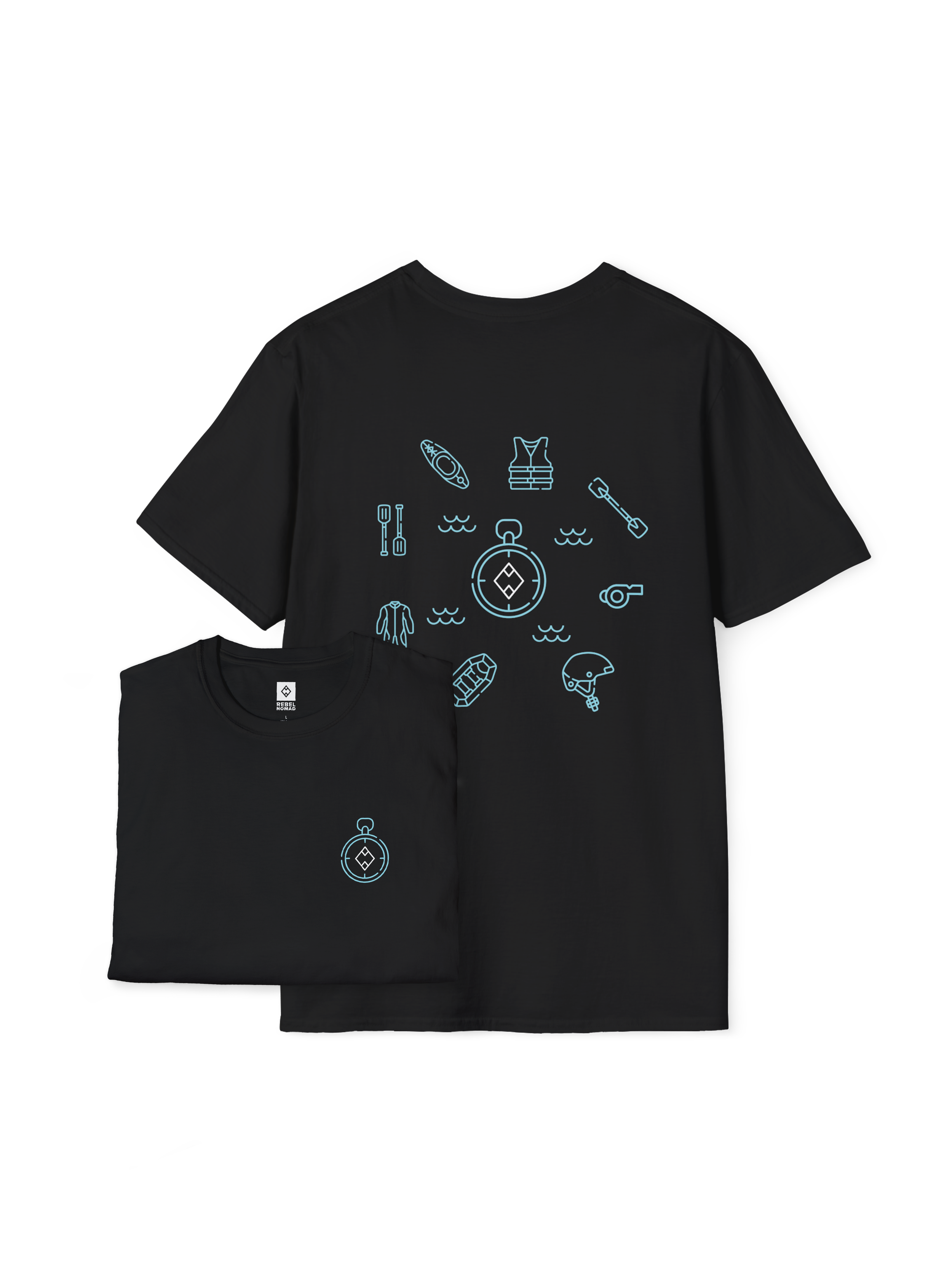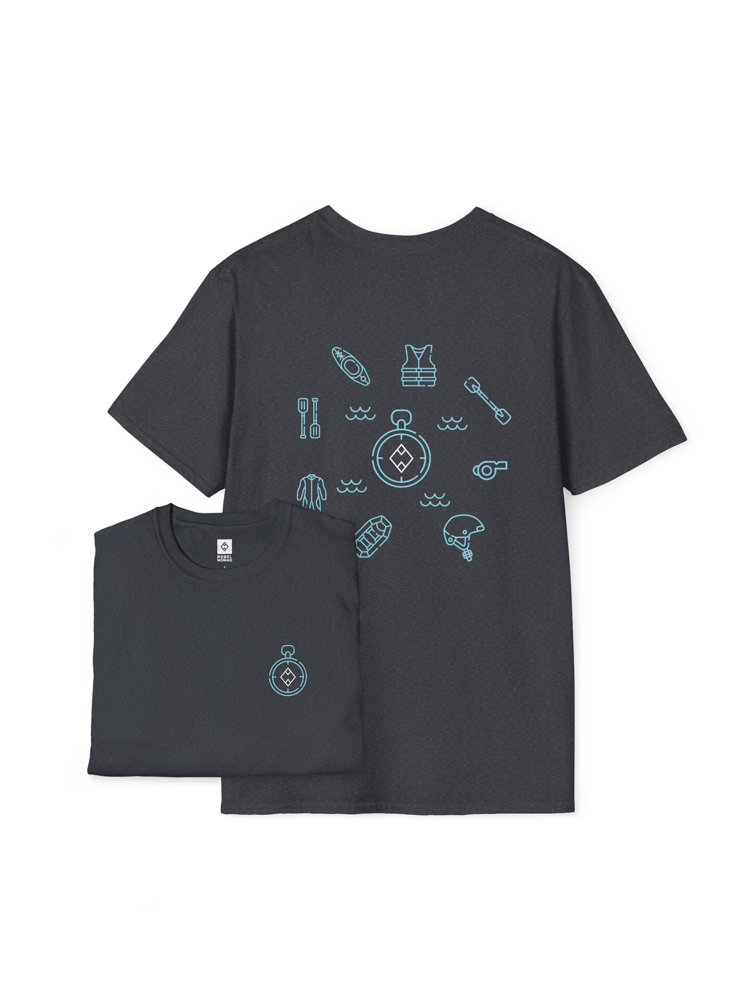Answer the call of the current. The River Guide Essentials Tee is designed for the adrenaline junkie who finds peace in the chaos of whitewater. This shirt features the essential tools of the river—paddles, dry bags, and life jackets—all anchored by the Rebel Nomad compass. It’s a rugged salute to the explorers who navigate the wild, embrace the spray, and respect the power of the water. Ride the wave, own the line.