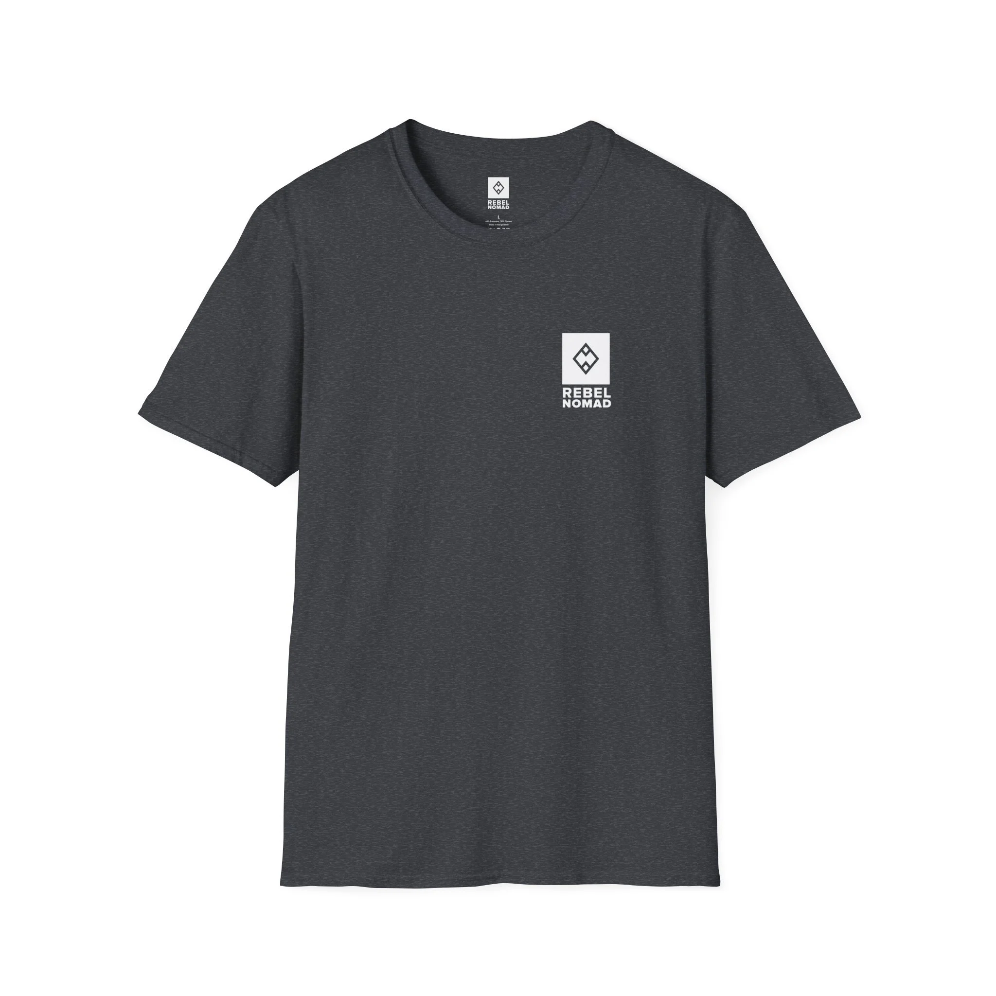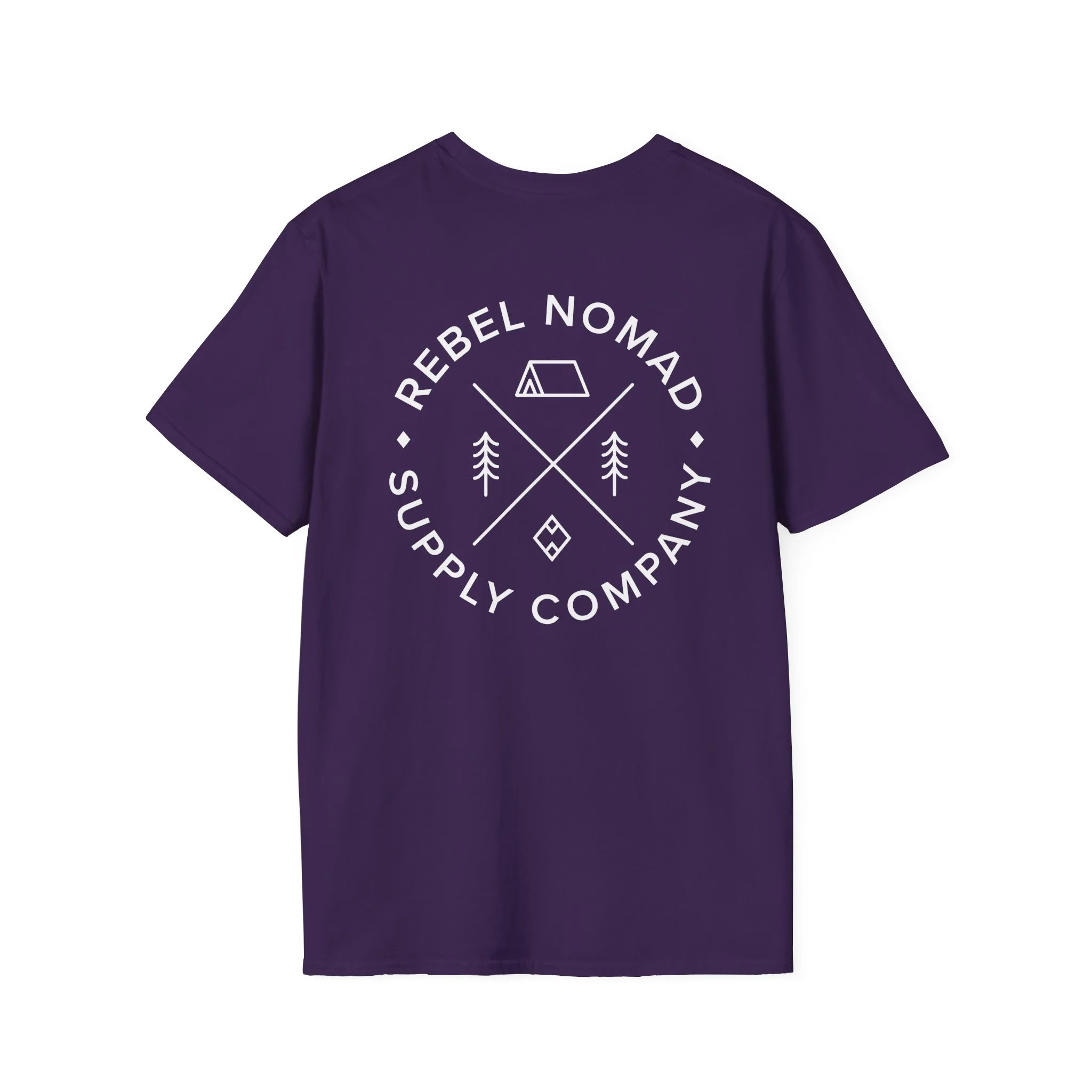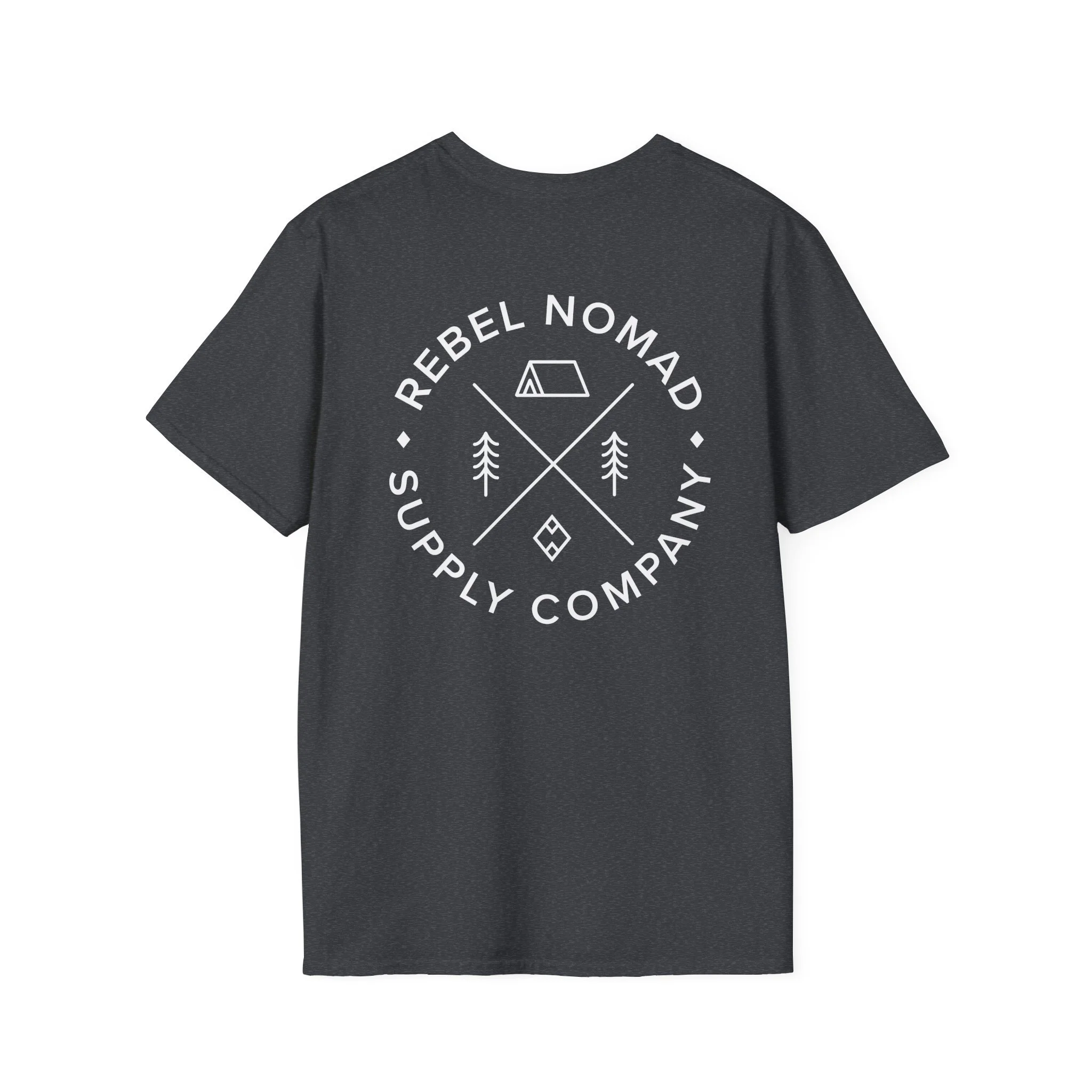This back-print features a clean, circular emblem divided into four quadrants—symbolizing the essentials of the nomad life: the tent, the timber, and the signature diamond that marks our start. Encircled by the REBEL NOMAD SUPPLY COMPANY title, it’s a timeless look that feels as fresh as the first hike of spring.